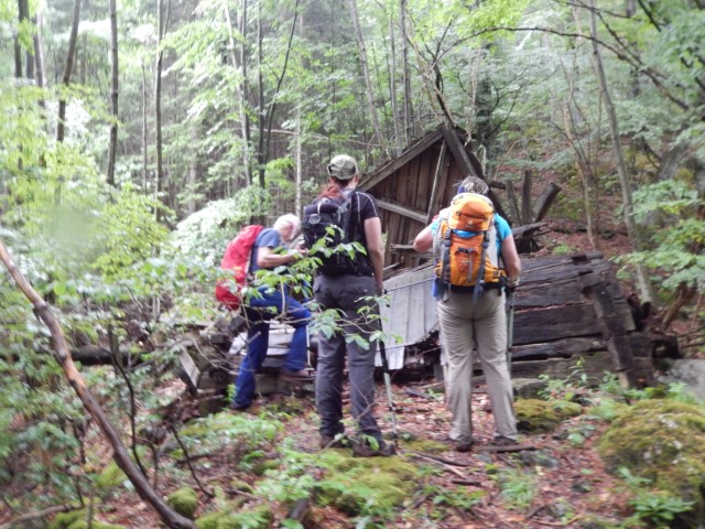 Spust je bil kar hud, potem pa smo spet prišli na povezovalno pot Kisovec - Sivnik in po njej odkolovratili do zapuščene in že podirajoče se lovske koče na Sivniku. No, tu sem pa zdaj vsaj približno vedel kje smo.