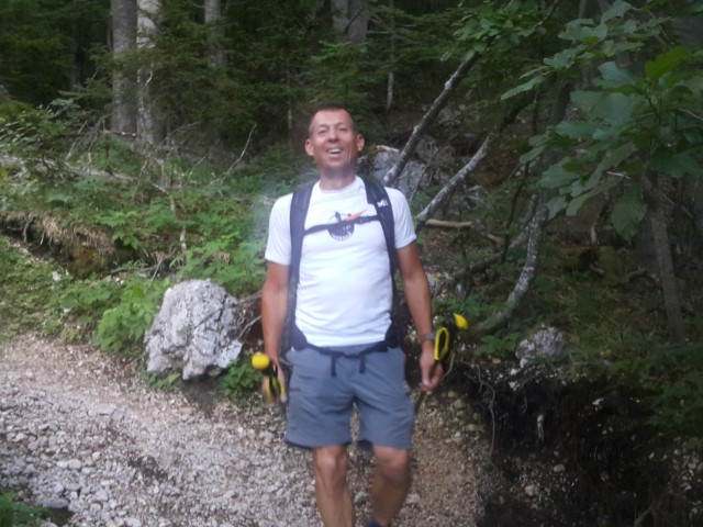 Dol sva šla s planinko, ki je bila kar nekaj let starejša od mene, a ravno toliko tudi bolj poskočna od mene. Da sva lahko kar naprej klepetala, sem se moral kar presneto potrudit in zdelo se mi je, da kar naprej tečem za njo. Hm.
