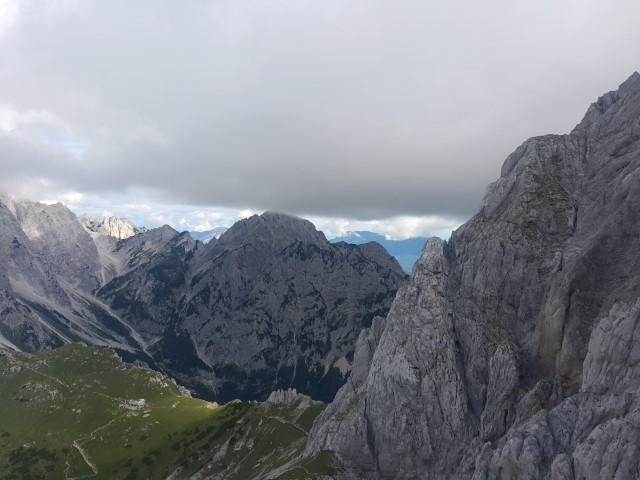 na temne oblake, ki so se zgrinjali na Kamniški strani.