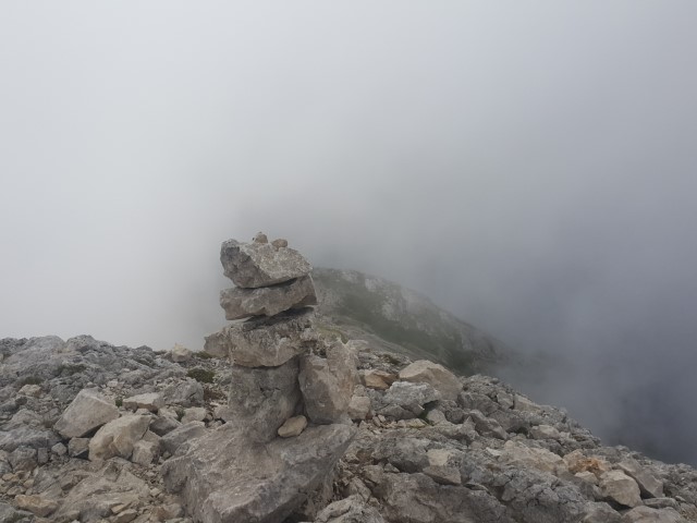 Sicer do vrha Planjave ni več kot urico in pol, a megla in oblaki so bili dosti hitrejši. Razgled je bil isti kot... no, kot takrat, ko je megla.