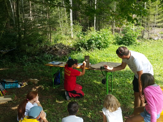 Midva pa sva mladim upom predstavila markacijska posla. Pa so lahko potem malo risali markacije. No, na karton, ne na drevesa.