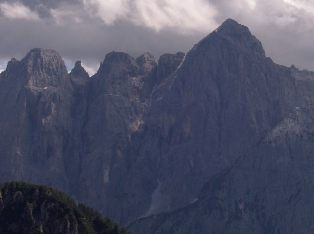 Oh, razgledi, razglediiiiiiiiii! Sva že kar visoko nad Corsijem! Cela skupina Kanina na drugi strani kanalske doline.