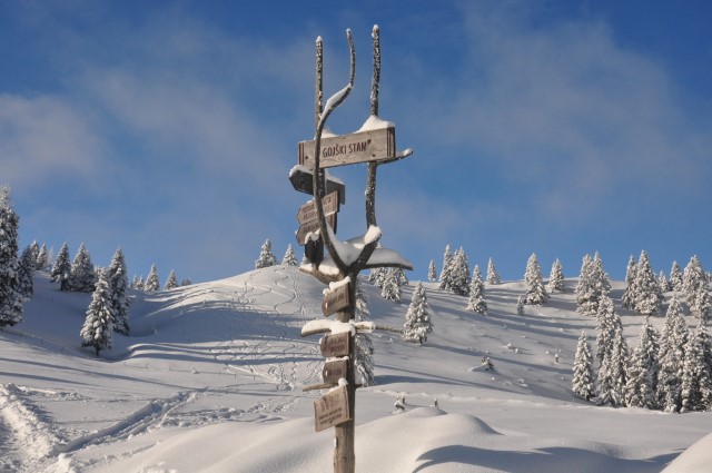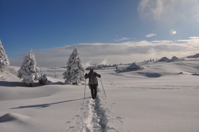 Konec novembra 2017 še nič kaj dosti snega, le visoko v hribih. Tudi na Veliki planini ga je bilo bolj malo.