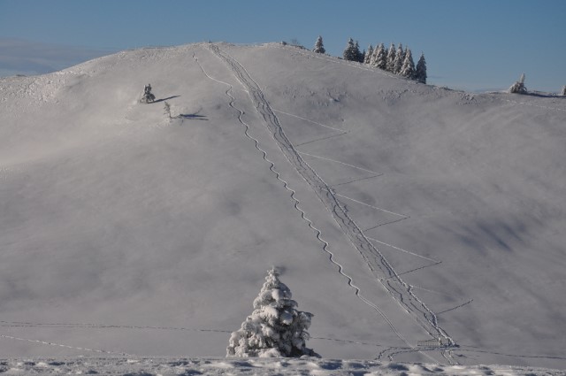 Se je pa nadvse potrudil tale turni smučar, da je vrezal take natančne linije, eno za gor, drugo za dol. Enkratno!