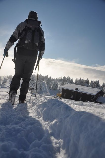 Šla sva kar od Kranjskega Raka, da ga ne mučim preveč, tam še ni bilo nič snega. Malce višje pa sva že natikala derezice, da sva lahko letela v hrib. Z mladci je hudir, hitri so!