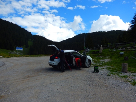 Potem pa se zapodimo direktno na Golte. Seveda se ne pripeljemo z gondolo, avto je boljša izbira! Zjutraj kar dobro piha!
