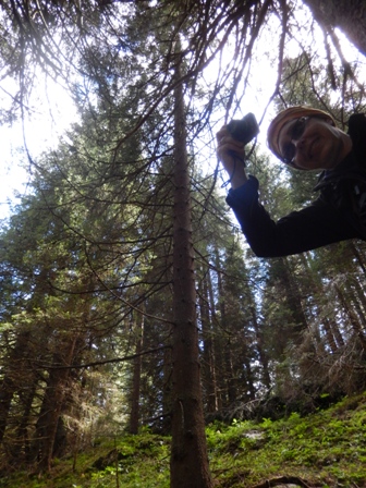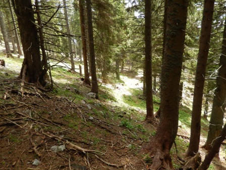 Tja do Smrekovca je preveč dol in sam gozd. Najmanj tri ure sem in tja. Nima smisla. Gremo mi raje tjale gor v gozd.