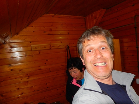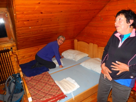 V koči smo potem žurali skupaj z gostoljubno in super oskrbnico do poznih ur. Cel dan smeha in režanja je bil presneto naporen. Se je zato zvečer že kar poznalo!