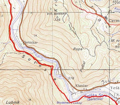 Skoraj do Praprotnega sem prišel, a malce prej obrnil v desno ob Selški Sori. In tam je padla še tista o tem, da se vsega spomnim. O, ja, pa stvari sem se že spomnil, najbolj pomembnega pa seveda ne. O tem, da pot ob reki ne gre lepo ob reki naravnost, temveč gre kar naprej gor in dol in gor in dol in gor in dol. Kar naprej.
