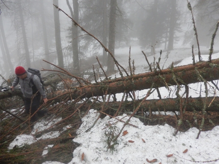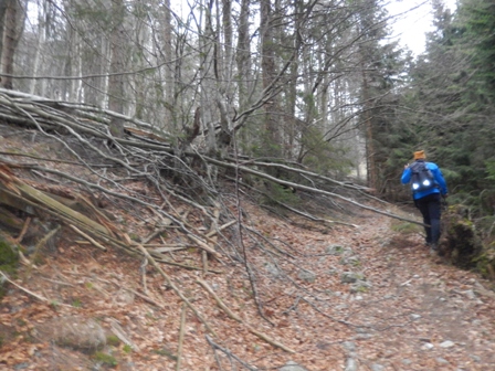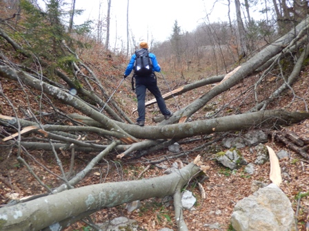 Potem pa se je potka začela malce bolj zgubljat, pravzaprav se je povsem izgubila. Tudi podrtega drevja je bilo že več in zadeva je postala težja. Sem že lazil sem in tja in se lovil, rob pa povsem izgubil.