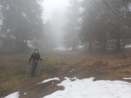 Dnevi prej so bili eni najlepših v tem času, ko pa sva se odločila za Menino, se je pa že vse počasi kisalo. 22.3. je bilo za pričakovati spodaj toplo, zgoraj pa megleno, vetrovno, ležal bo še sneg. To vse sva vedela, a jaz vseeno nisem vzel gojzarjev. "Na planine pa ja ne bom hodil v visokih čevljih!", sem se pridušal.
