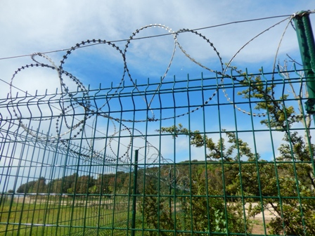 In na koncu le prideva do kampa, kjer pa ne veva povsem natančno zakaj imajo take varnostne ograje? Je to zato, da ne prideš noter ali zato, da ne morejo ljudje ven? Ograja je namreč kar precej huda...