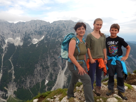 Do vrha smo porabili kar tri ure. Počasi, z malicami, razgledovanjem in počivanjem. Nič hitenja, smo pohodniki!