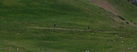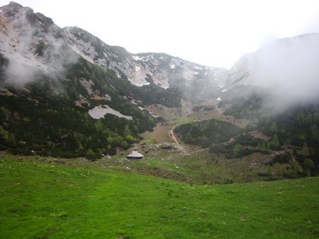 Ker sem vse opise seveda prej že stokrat dobro prebral, se nisem prav nič lovil. Natanko sem vedel, kje moram zavit navzdol. Enkrat davno nazaj sva se tam že lovila in sem se še spomnil, kako in kaj. Luž ni težko zgrešit, ker so res luže, močvirje, nato pa le še slediš potki. Zdi se mi celo, da bi moral bolj pazit, če hočeš it naprej proti Krvavcu, v tem primeru se moraš držati malce bolj levo.