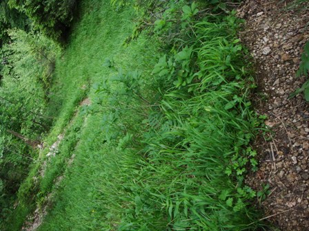 Da tukajle naredim sliko, že zelo veliko pomeni. Borim se, borim. Potka pa z mano, ker je vedno ožja in ožja. A se mi zdi, da se celotna travnata grapa malo zarašča, le upam, da čimdlje ne bo več nobenega plazu. Morda pa se vse skupaj zaraste in ne bo več presnete travnate drsalnice...