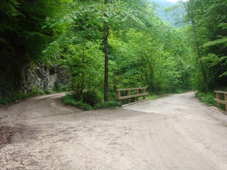 Nato se držim zgornje, desne ceste. Pričakujem, da bo zavila dol, ampak ne! Gre celo gor, ej! Pa naravnost, pa gor, vse, samo dol ne... Šele čez čas se začne polagoma spuščat. Sem v začetku mislil, da že ne grem prav in da me bo neka nova cesta popeljala bogve kam! Ah.