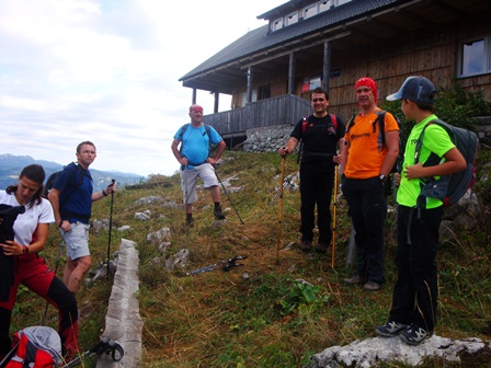 In ja, seveda smo bili hitrejši od skupine z gondolo, za kakih petnajst minut! Uro dvajset smo potrebovali do dol... Zato smo se lahko že delali frajerje in slikali počasneže...