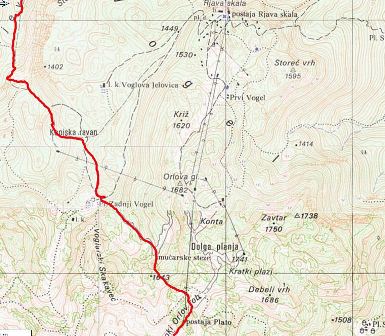 Debela črta je tam, kjer smo šli mi, črna in tanka rdeča pa sta "kao" pot in to celo markirana! Juhej, juhej. Zaupati kartam?