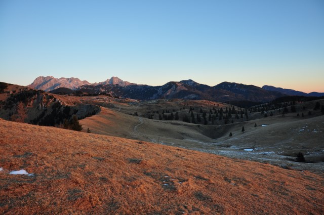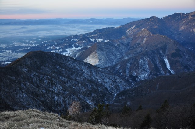 Razgledi so bili enkratni. Predvsem v smer, ki nama ni poznana. Med tiste hribe se bo treba enkrat zapeljati, v tiste malce strme cestice pod Muzce proti Učeji in Reziji. Greben Stola in nato Muzcev sega res daleč, daleč! In vse je tako daleč, odmaknjeno, težko dostopno. Prekrasno!