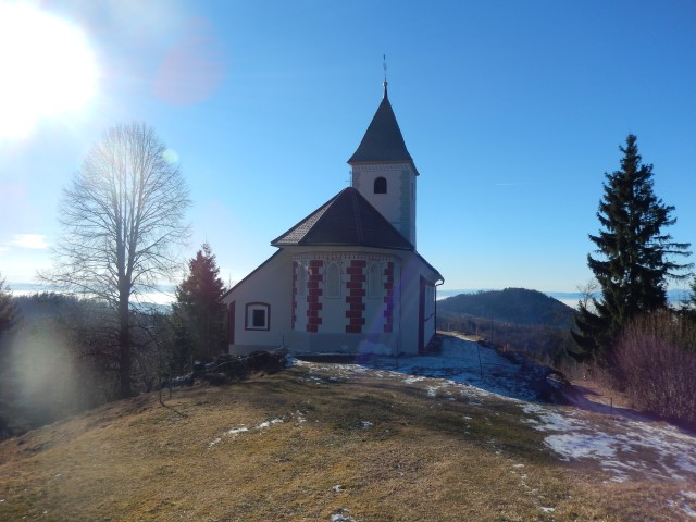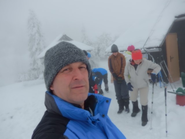 Pa nam kar ne gre. Ustavimo se še pri Sv. Ahaciju, tam imamo celo malico. Nihče noče v dolino, tam je megla, tule gor pa...