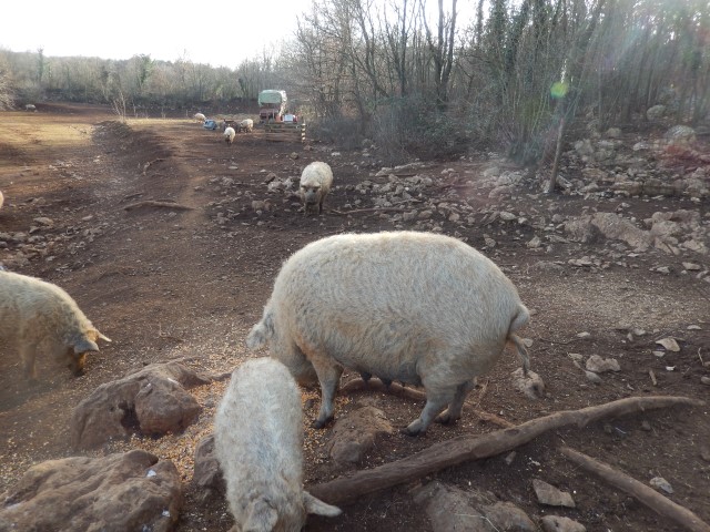 Pa so k sreči prišli direktno k nam, so že kaj pričakovali, da smo si jih lahko ogledali. Hja, prašiči z ovčjo dlako, nekako tako. Povsem zmedeni smo morali seveda takoj pogledat, kaj je to za eno čudo. Mangalica: prašič, ki zgleda kot ovca in se vede kot pes.