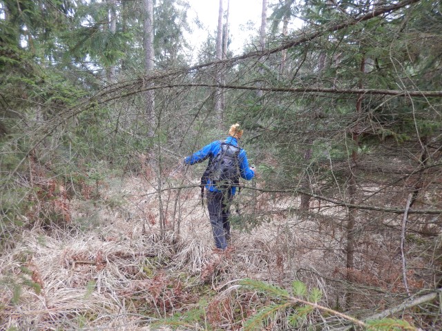 Gor do starega gradu sva šla spet kar direkt v hrib in na vrhu ugotovila, da pa tole za običajne pohodnike ne bo najbolje. Me je potem kar nagnala dol in sva morala še enkrat gor po drugi poti. Po taki bolj primerni. K sreči sva jo našla, v teh časih je polno nekih novih kolovozov za spravilo lesa. Blatno in razrito, a hej, kdo bi se pritoževal.
