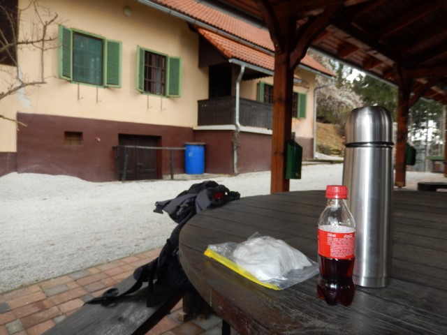 Zato pa sva morala pri Lovskem domu Domžale imeti malico. Saj ne gre kar naprej dol in gor v isti hrib lazit, ne? Tule morava z lovci kakšno rečt, morda bi pa lahko malo posodelovali?