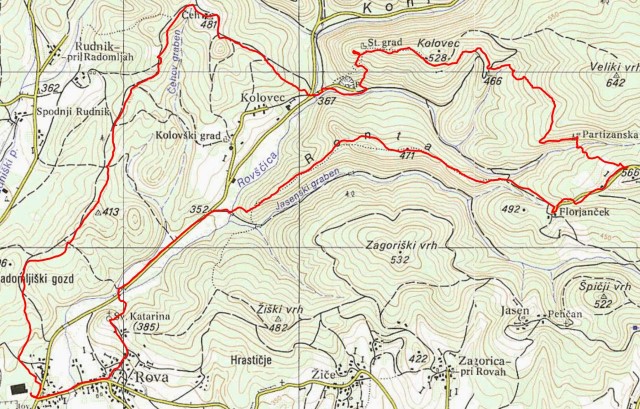 Pa mimo Florjančka na greben Ronte v dolino Rovščice in nato gor do cerkvice v Rovi.