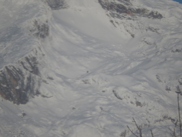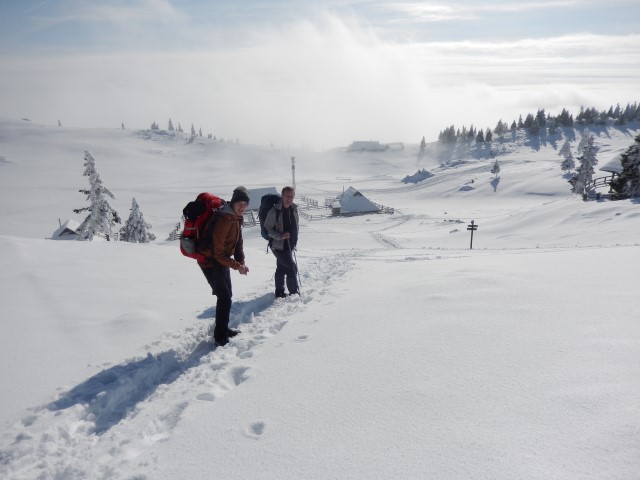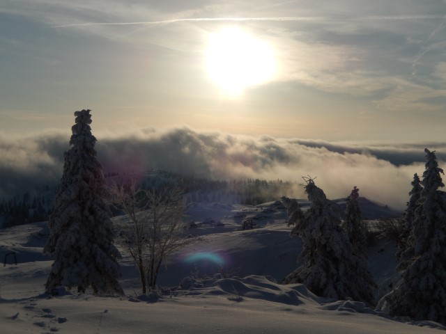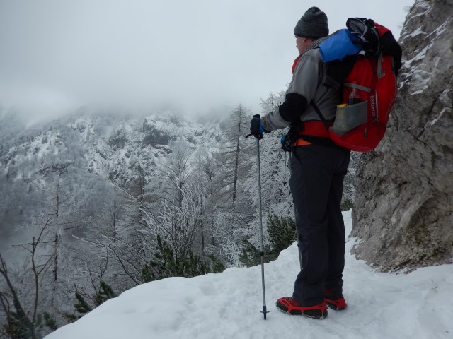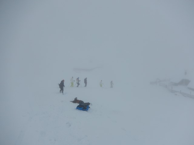 Na Pasji peči je bilo snega pa že kar veliko. Megla pa spodaj, nad nama pa oblak. Eh, pa tako vreme!