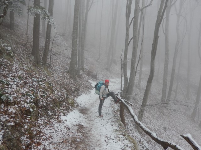 Vse lepo in prav, tudi pot nam že dolgo ni več predolga ali pretežka, le ta presneta megla! Precej visoko se je že začela.