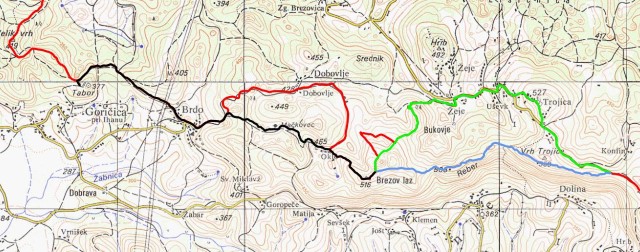 Potem se nama pa je malo zakompliciralo, že v Brdu so naredili ogromen konjeniški center, skozi katerega bo treba speljat pot, še nihče ne ve, kako. Nato pa je pot markirana po cesti, a gredo čez gozd prav lepe poti. Kaj, če bi speljali kaj na novo, vsaj nekaj poti? Na enem koncu se je celo vse skupaj zaraslo in to kar precej. Bolje, da pot speljemo po grebenu?
